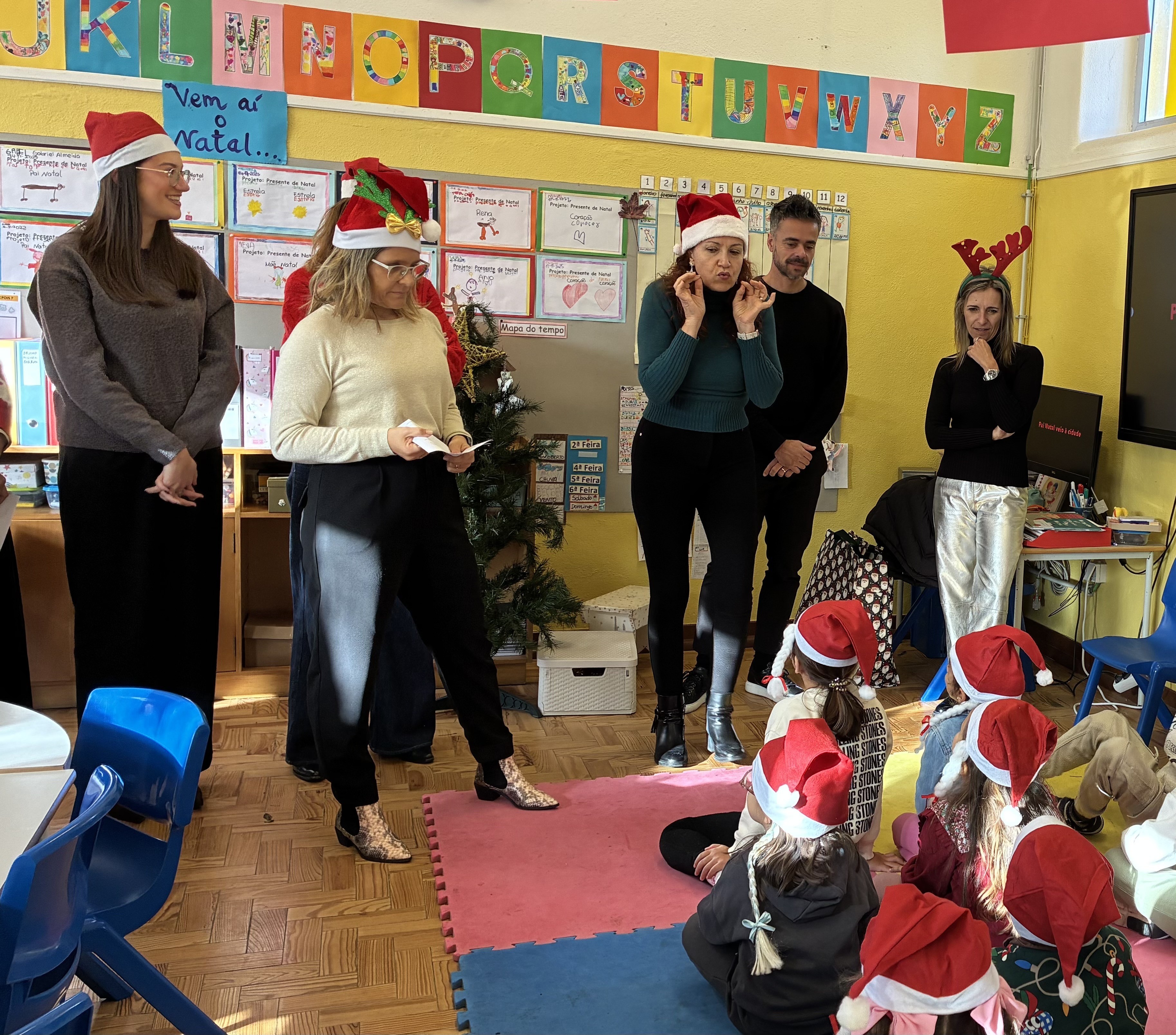 No passado dia 16 de dezembro, o Jardim de Infância Nossa Senhora do Vale, em Oeiras, ganhou novas cores e sorrisos para celebrar a magia do Natal numa festa inteiramente dedicada às crianças. A iniciativa integrou-se no projeto EPIS Sucesso 2040 – Pré‑Escolar, apoiado pelo The Human Safety Net Portugal, e contou com a dedicação de voluntários que ajudaram a transformar esta manhã num momento único.