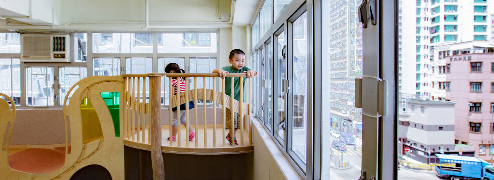 The P. C. Lee OneSky Global Centre for Early Childhood Development in Hong Kong offers a community gathering place where vulnerable children, ages 0-6, and their caregivers can play and learn together. It features an indoor educational playground, facilitated play sessions, parenting-skills workshops, a family resource centre, and consultation and referral services, all available for free to qualified families.